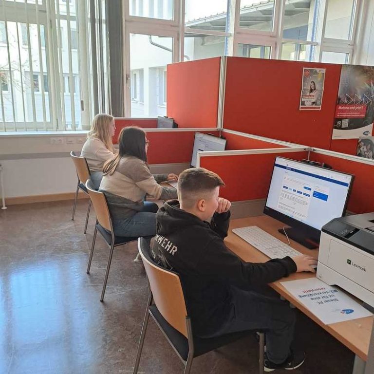 Welche Möglichkeiten haben unsere SchülerInnen nach dem erfolgreichen Abschluss der Mittelschule? Im Rahmen des Berufsorientierungsunterrichtes haben die SchülerInnen der 3a im Berufsinformationszentrum des AMS einen Workshop zu den Ausbildungsmöglichkeiten nach der Mittelschule besucht. Dabei wurden das österreichische Ausbildungssystem und seine Möglichkeiten besprochen. Anschließend konnte mithilfe eines kurzen Interessens- und Eignungstests eine Tendenz erarbeitet werden, die verschiedene Fragen zu klären versucht. Ist man ein forschender, sozialer, künstlerischer, unternehmerischer oder praktischer Typ, eher Team- oder Einzelarbeiter und tendiert man in Richtung Lehre oder weiterführende Schule?